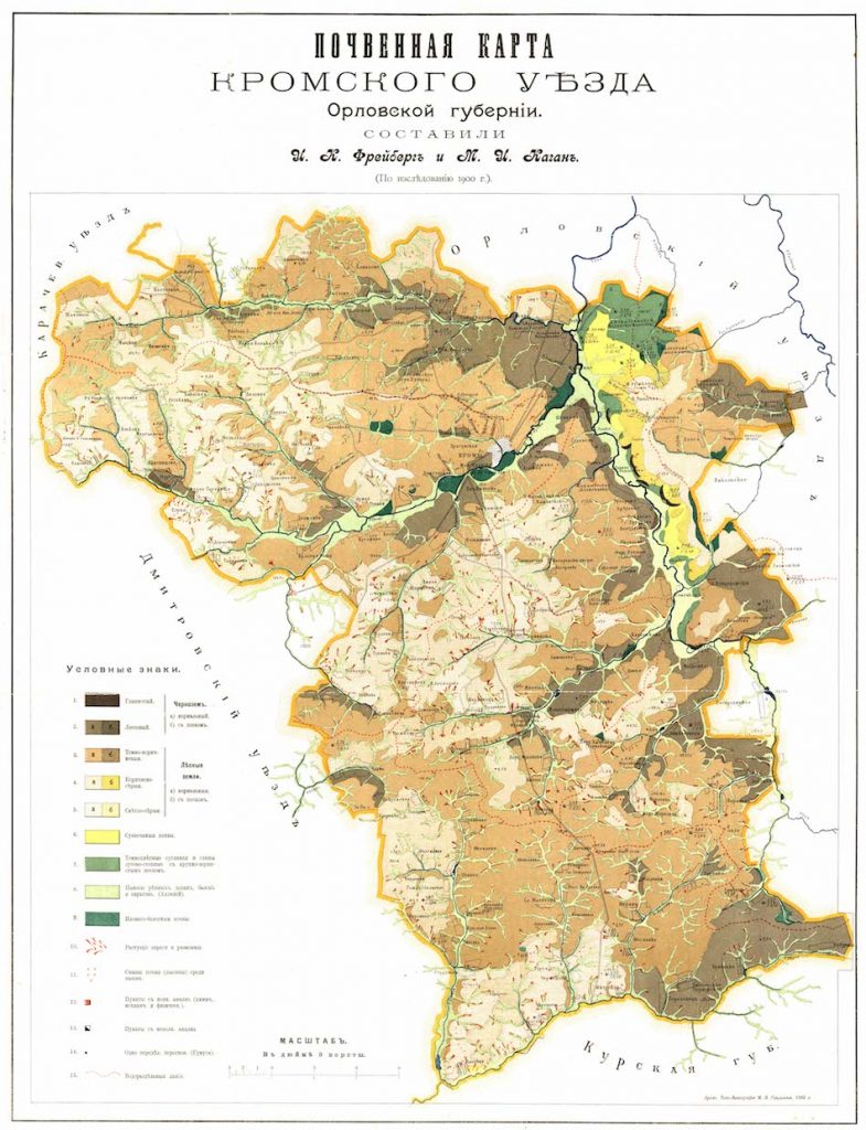 Оригинальное название: Почвенная карта Кромского уѣзда Орловской губернiи