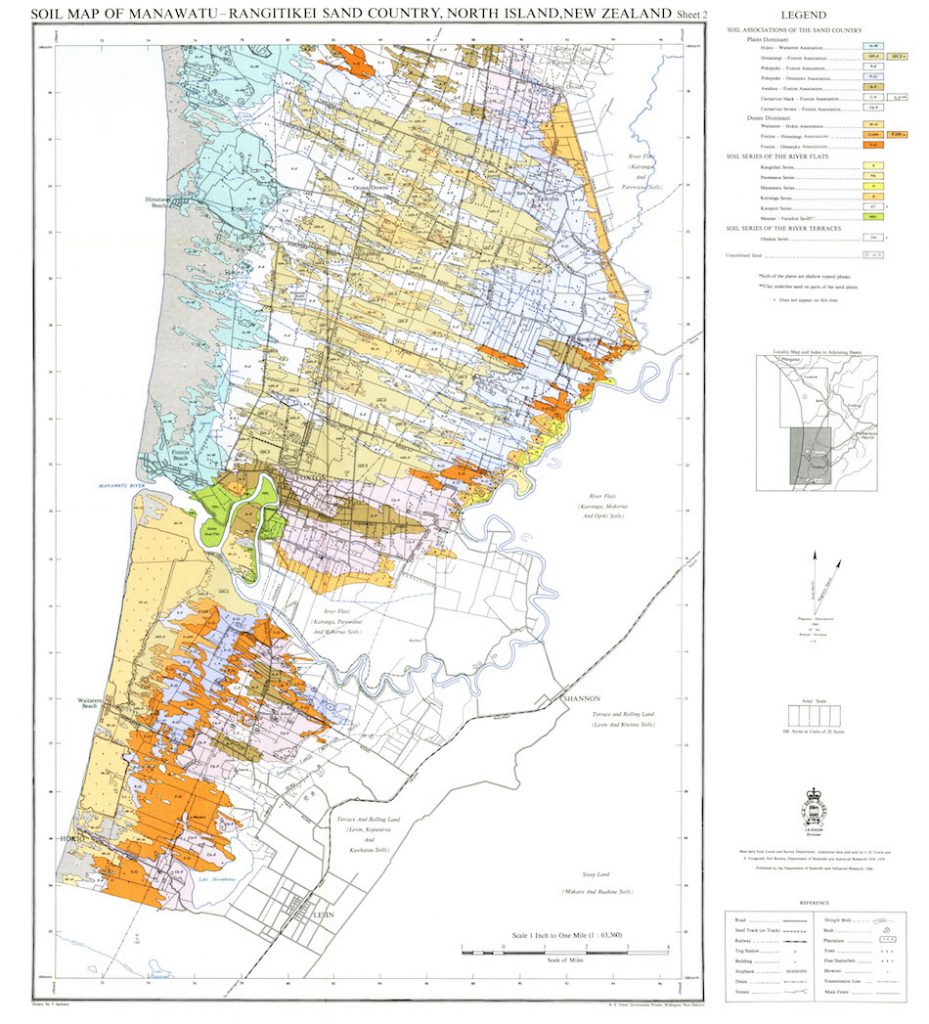 Оригинальное название: Soils map of Manawatu — Rangitikei sand country, North Island, New Zealand
