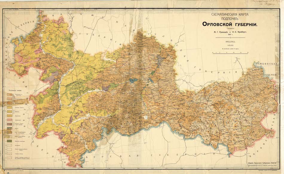 Оригинальное название: Схематическая карта подпочвъ Орловской губернiи