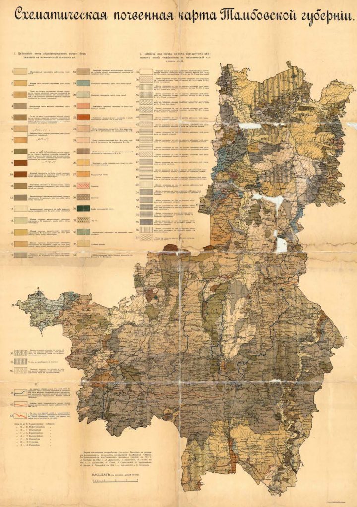 Оригинальное название: Схематическая почвенная карта Тамбовской губернiи